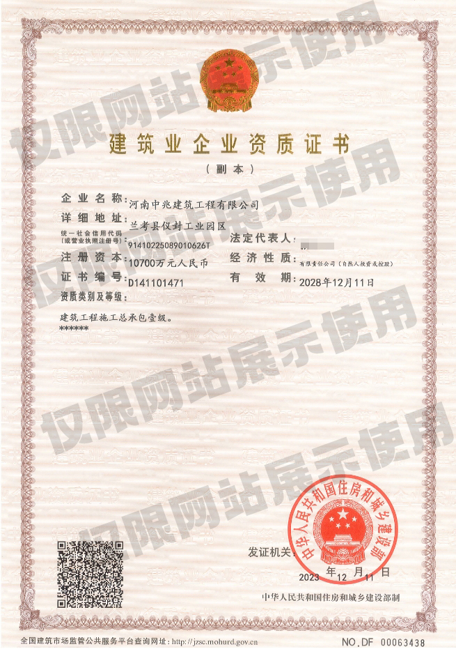• 河南中兆建筑工程有限公司成立于2013年,公司注冊(cè)資本10700萬元,凈資產(chǎn)總額近1.9億元。公司目前具有“建筑工程、市政公用工程、鋼結(jié)構(gòu)工程、建筑機(jī)電安裝工程、建筑裝修裝飾工程、地基與基礎(chǔ)工程、消防設(shè)施工程、壓力管道”等17個(gè)資質(zhì)。現(xiàn)有從業(yè)人員2150人,具有中高級(jí)各類專業(yè)技術(shù)職稱管理人員達(dá)120人,壹級(jí)、貳級(jí)建造師約90余人;主要施工設(shè)備300多臺(tái)(套)。通過了ISO9001質(zhì)量管理體系認(rèn)證、職業(yè)健康安全管理體系認(rèn)證、環(huán)境管理體系認(rèn)證,并多次獲得省級(jí)“AAA”信用企業(yè)、“重合同守信用”、“先進(jìn)建筑企業(yè)...